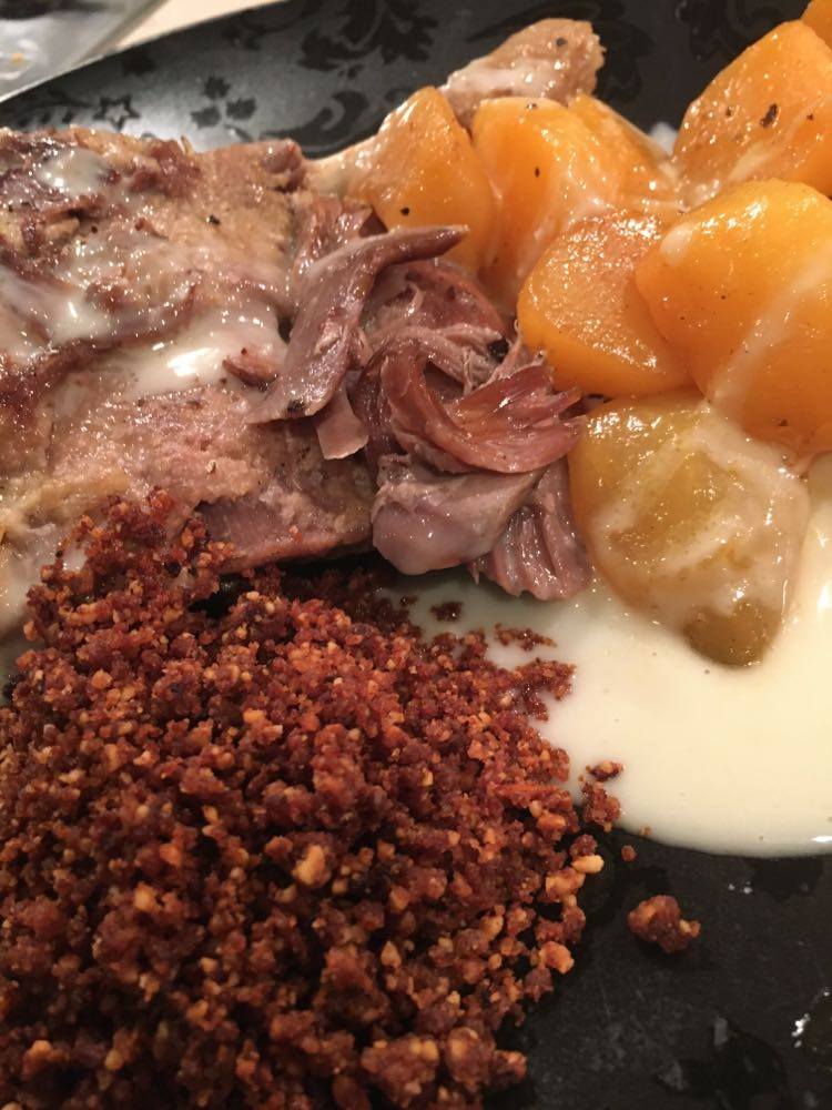 1. La cuisson de la viande : le seul hic était le fait que je n’avais à disposition que des carbonnades (donc viande déjà précoupée) et qu’avec le type de cuisson utilisé au final il y avait encore trop de décomposition de la viande. Le mieux est de trouver des morceaux entiers comme indiqué dans la recette.