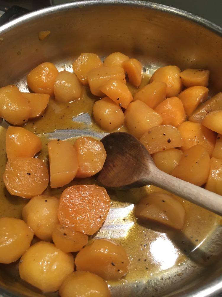 2. Cuison des légumes : aussi bien les échalotes que les carottes dans la sauce ou les carottes entières cuits dans le jus étaient une vraie réussite.