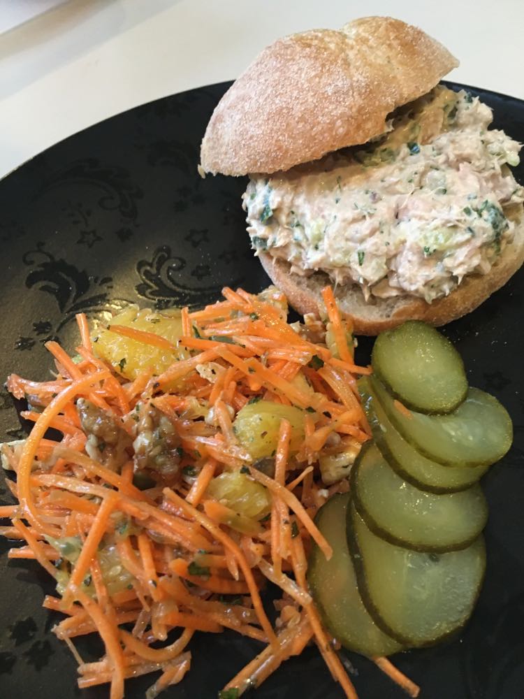 Environ 1 heure avant de manger, y mélanger les carottes et les segments de mandarine. Laisser bien toutes les saveurs se mélanger.
