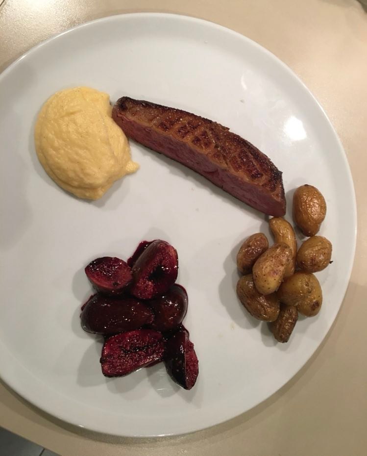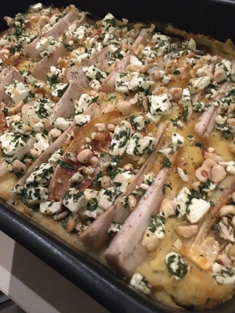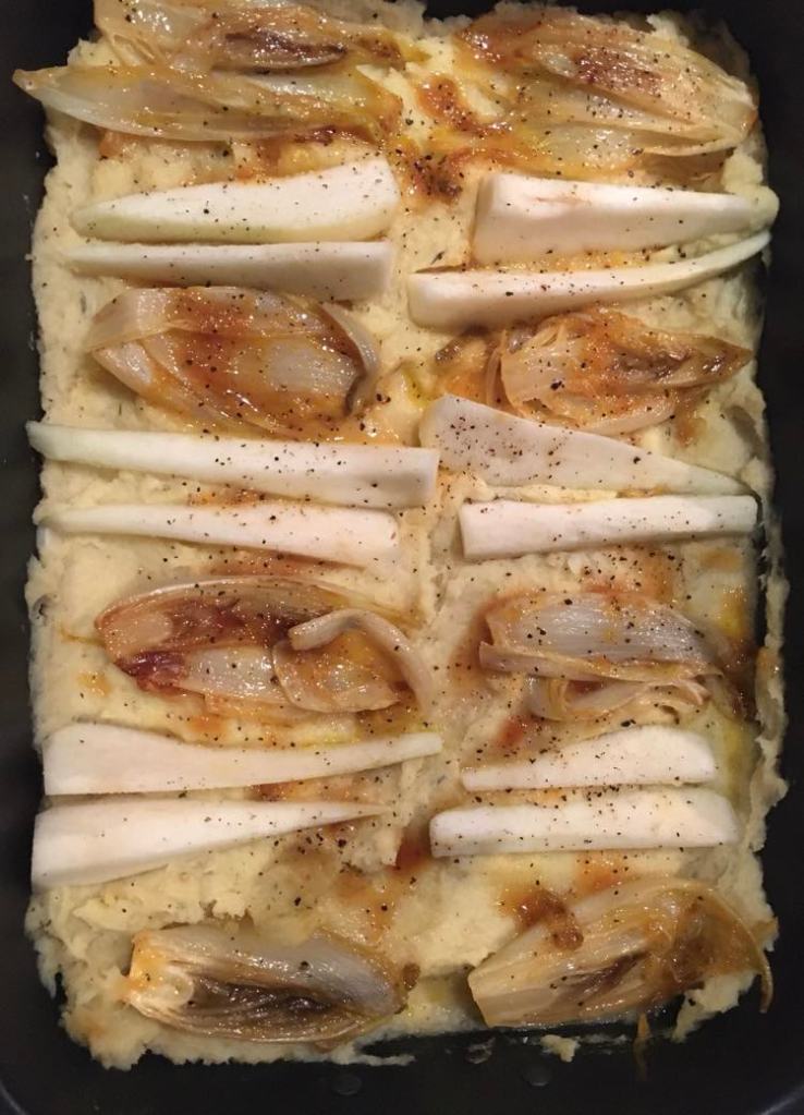 J’avais vu passer une recette de polenta crémeuse et de chicons braisés de Simon Auscher. J’ai un peu travaillé dessus et brodé autour. J’avais envie d’un truc gouteux, réconfortant et riche en saveurs. Ce plat m’a donné toute la satisfaction que j’en attendais.