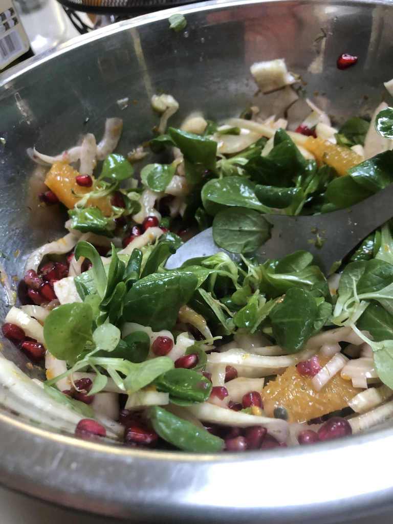 Fenouil mariné à l’orange, fruit de la passion et grenade
