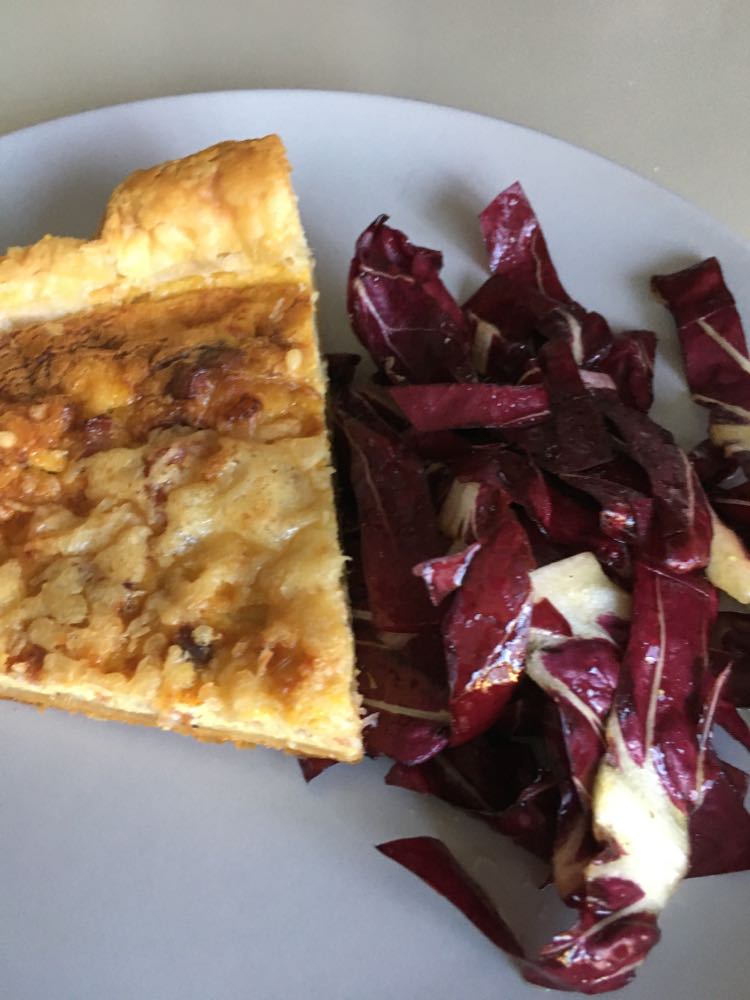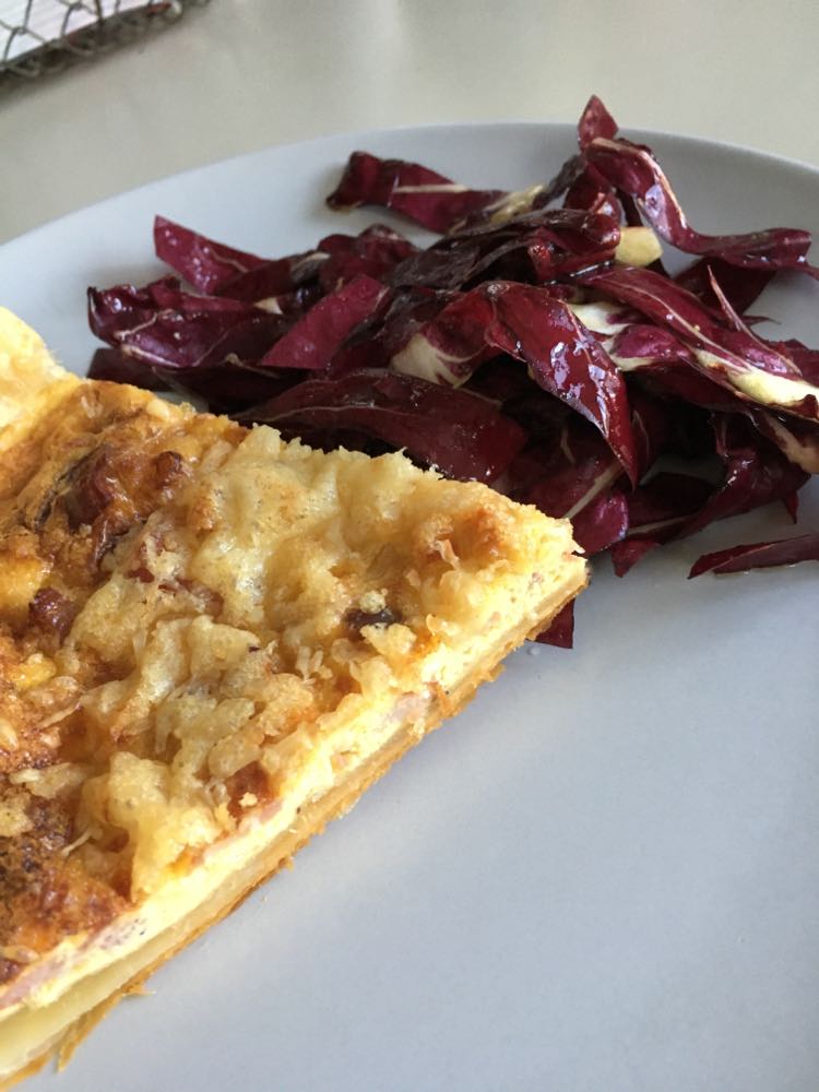 Vous pouvez déguster cette quiche éventuellement avec une bonne salade verte et un bon verre de pinot blanc d’Alsace.