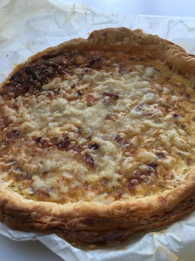 Une chose est améliorable : la coloration des bords de la quiche. J’ai utilisé une pâte de commerce et je n’ai pas beurré le moule car nous avons foncé la pâte en gardant le papier de cuisson entre le moule et la pâte. Peut-être aurait-il fallu mettre le papier de cuisson, le beurrer, puis mettre la pâte ? A revoir éventuellement.