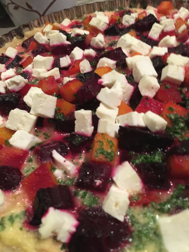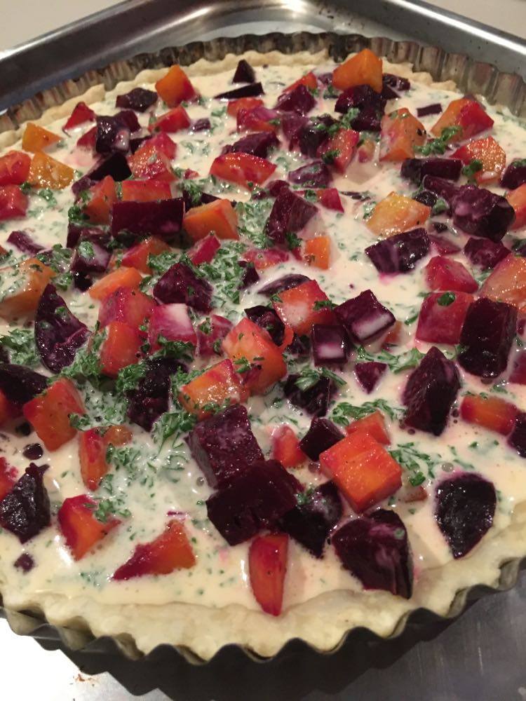 QUICHE A LA BETTERAVE, BUTTERNUT, OIGNON ROUGE ET FETA