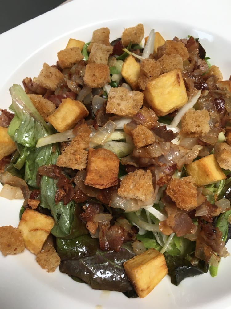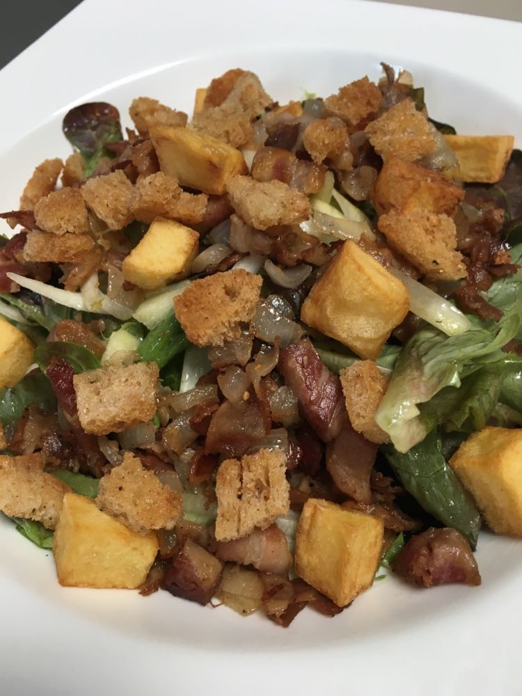 J’avais déjà fait cette recette de salade de lentilles rapide à base de lentilles en conserve, mais avec des courgettes grillées et du chèvre frais. Cette fois, il s’agissait de réaliser une salade d’accompagnement de viande, donc sans le chèvre frais. Et pour changer, j’ai décoré la salade de chou-fleur cuit à l’eau et légèrement épicé et de patates douces rôties au four.