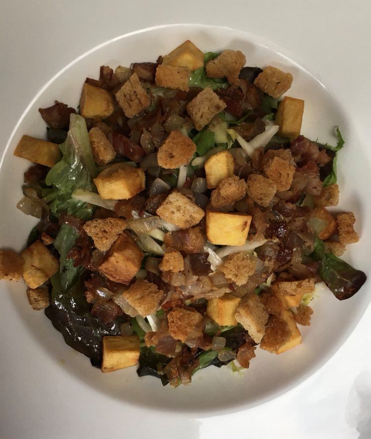 1. Les dés de chorizo n’apportent pas grand chose et en plus il s’agissaitd’un teop vieux morceau qui avait perdu tout son goût et était devenu trop sec. Donc, on baque. J’avais d’abord pensé remplacer le chorizo par de la poudre de chorizo, mais ça n’apportera pas grand chose de plus que de saupoudrer la soupe de piment d’espelette, cayenne ou paprika et puis aucune texture. La prochaine fois je partirai sur des croutons, soit cuits dans une huile pimentée ou une huile au paprika, soit en réalisant un pain à la poudre de chorizo ou aux épices, avec lequel je ferai mes croûtons. On testera.