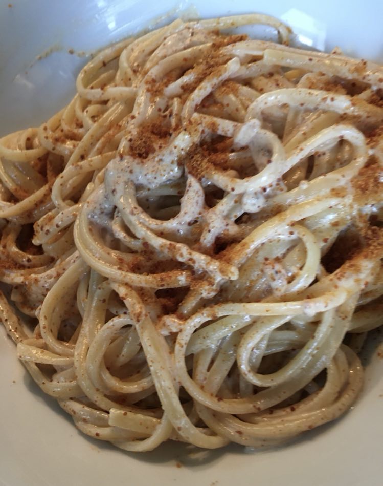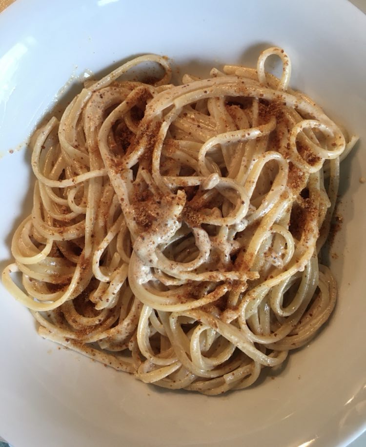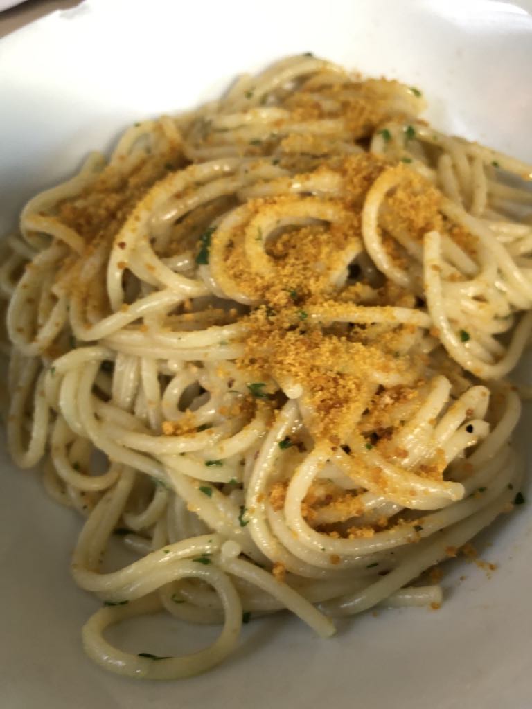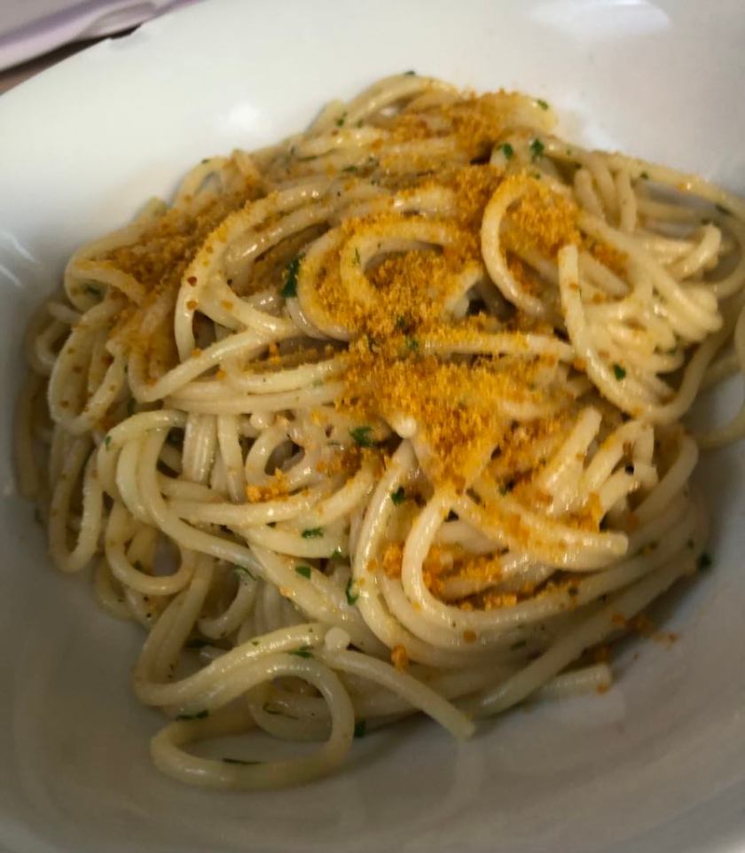 RISOTTO A LA CREME DE MAUVE ET ANCHOIS, CHAPELURE FRITE, PERSIL ET ZESTE DE CITRON