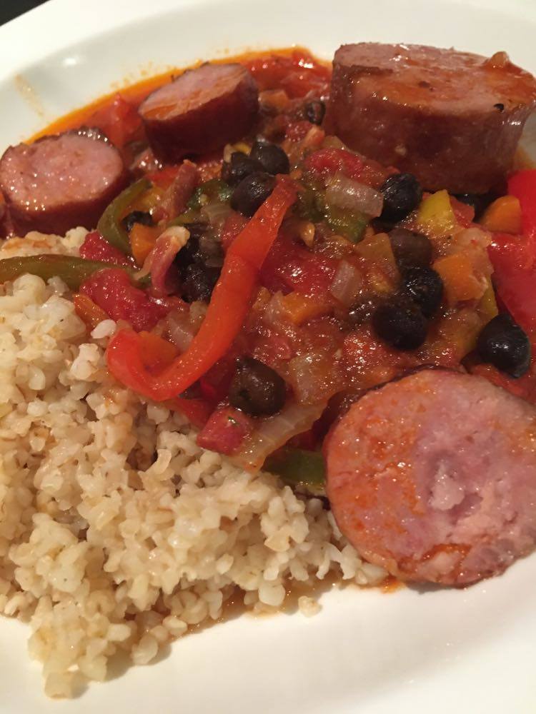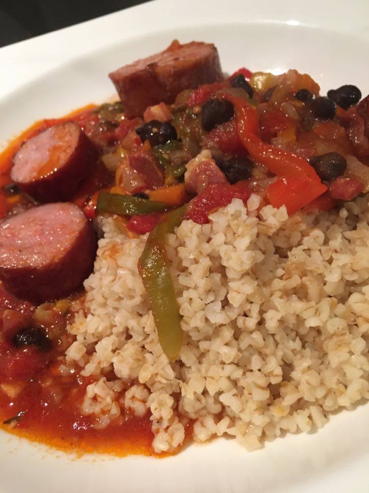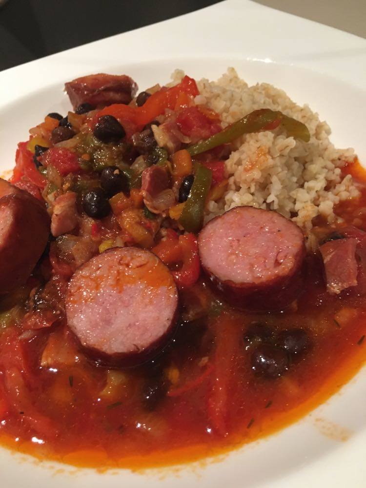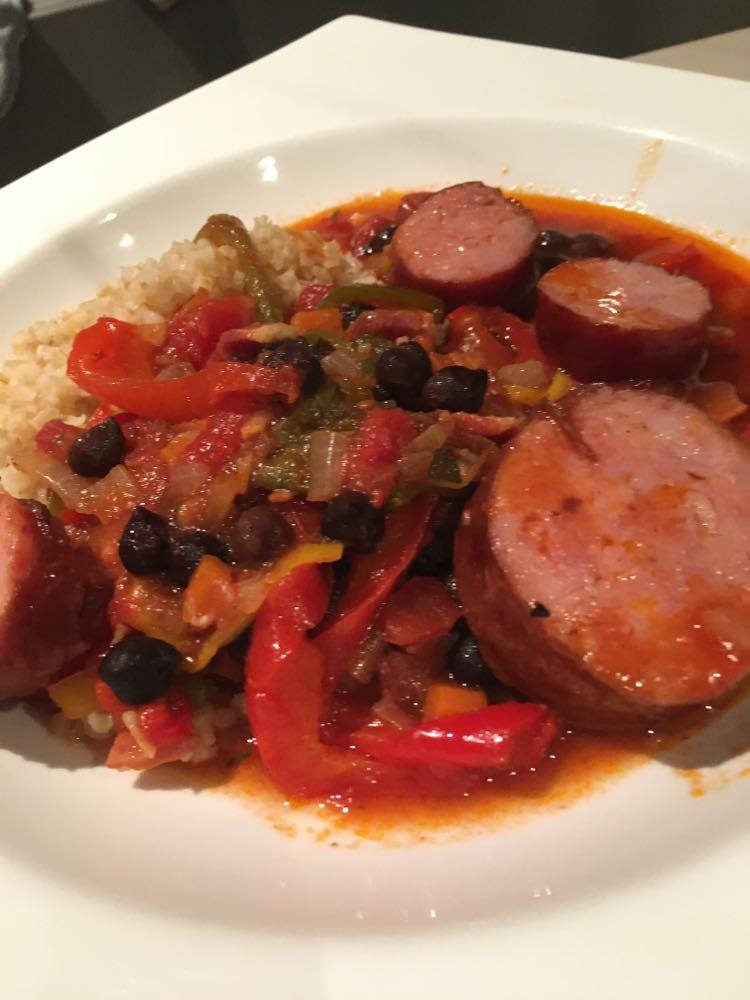 J’ai fait quelques entorses à la recette d’origine en ajoutant un peu de piment et quelques tomates, mais cela me plaisait plus ainsi.