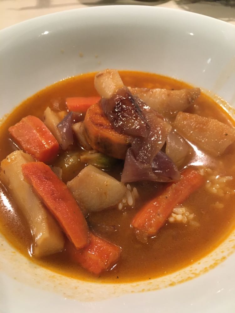 CURRY CREMEUX DE CHOUX FLEURS, LENTILLES VERTES ET RAISINS SECS