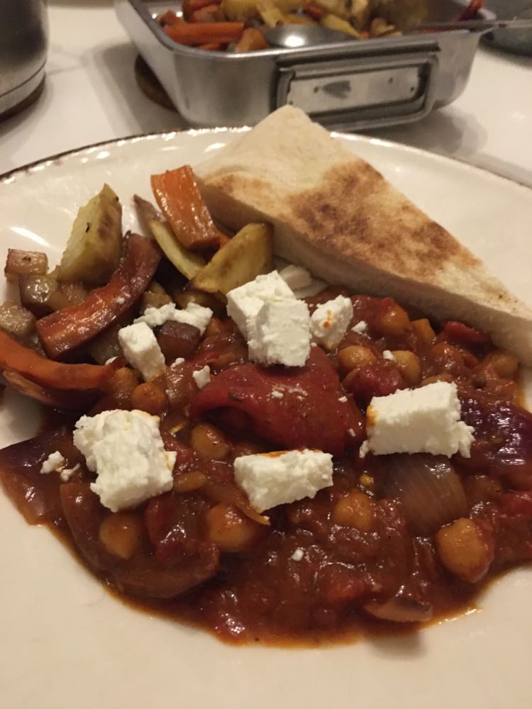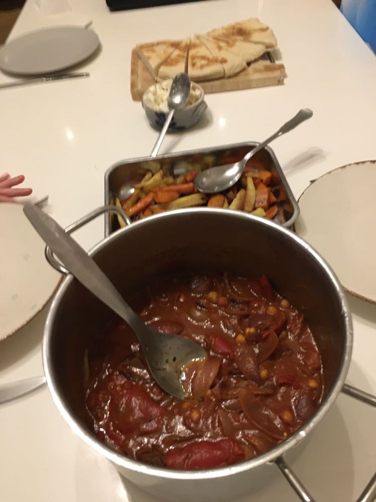 En accompagnement, du pain marocain et un mélange de raisins secs et oignons à la cannelle (j’adore ça).