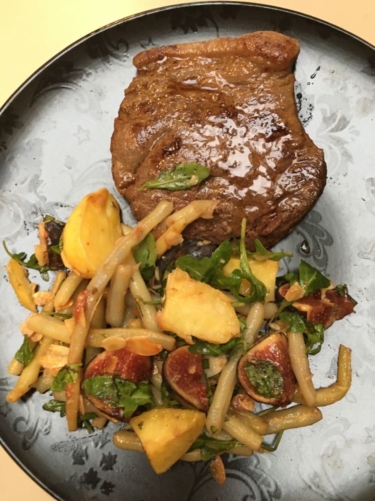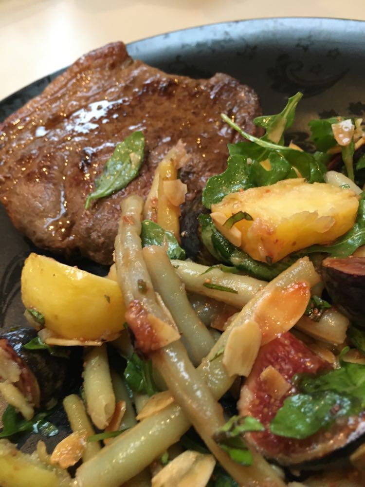 J’ai trouvé qu’il y avait des bonnes idées. Mais déjà quasi pas d’assaisonnement dans le tartare (mais salière et poivrier à table), aucune acidité sur l’assiette (ni citron ni balsamique), quasi pas d’huile d’olive. Manque de punch, pour moi et même le parmesan, pour celles et ceux qui aiment ça dans un tartare, on pouvait compter les copeaux avec les doigts d’une main. J’ai mélangé tout ce qu’il y avait sur mon assiette et assaisonné et j’ai toujours trouvé ça pauvre en goût. Heureusement qu’il y avait en-dessous du parmesan, ce petit peu de purée d’anchois (même si je ne l’ai pas trouvé assez forte en goût).
