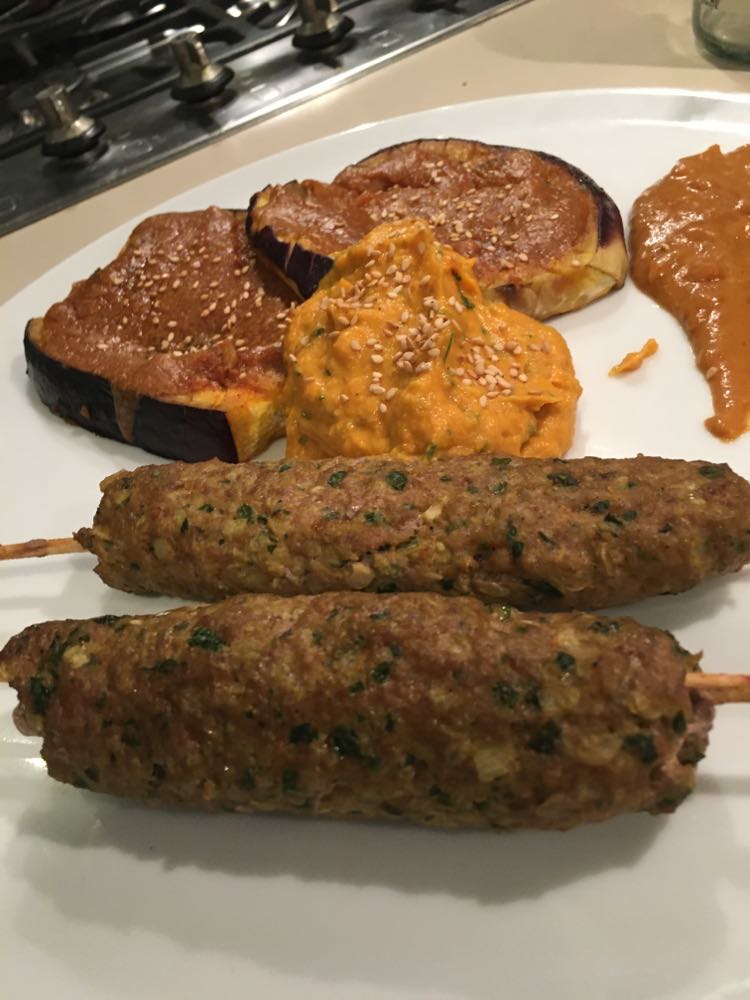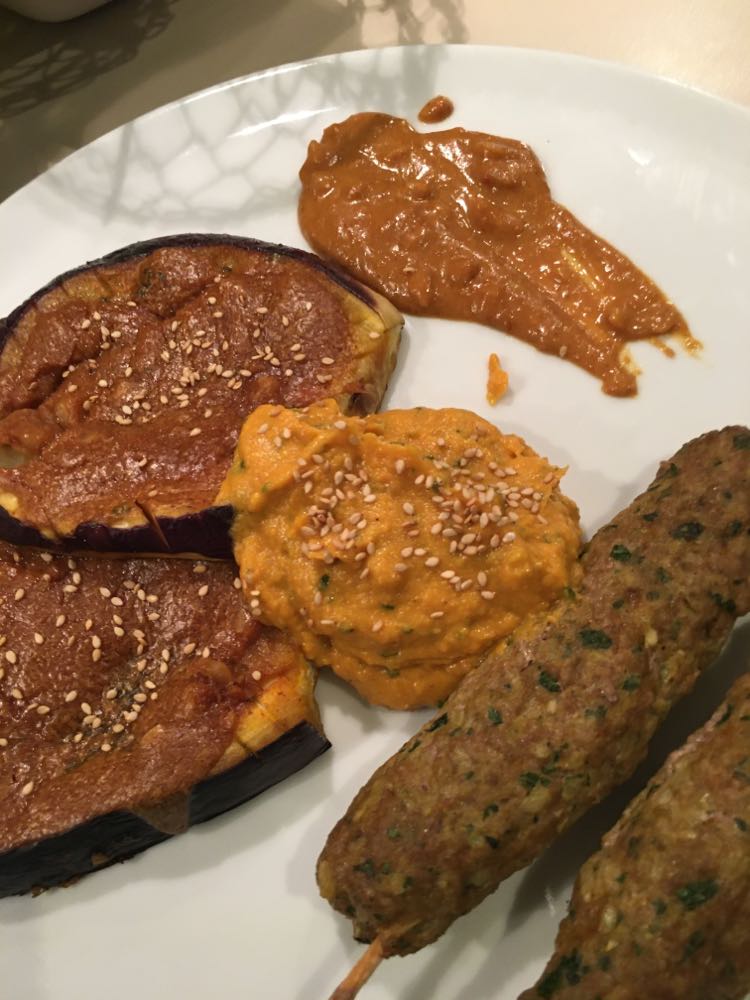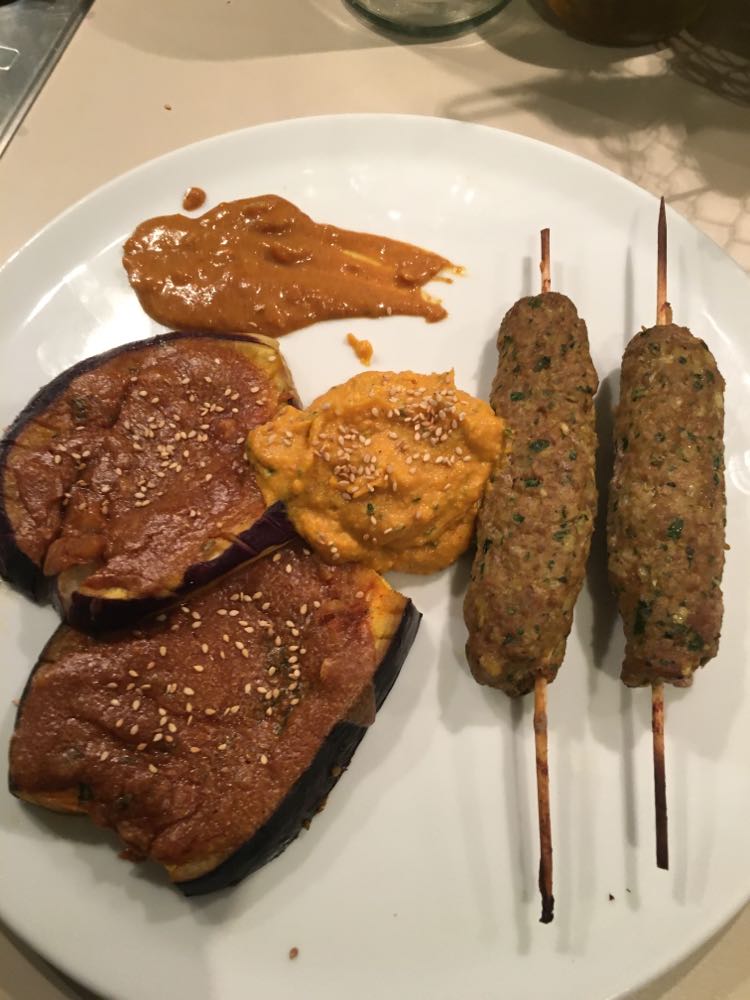 Les brochettes kefta sont là pour en faire un plat complèt, mais pouvaient aussi bien ne pas y être. C’est l’accord aubergine-sésame-satay-patate douce qui fait le plat.