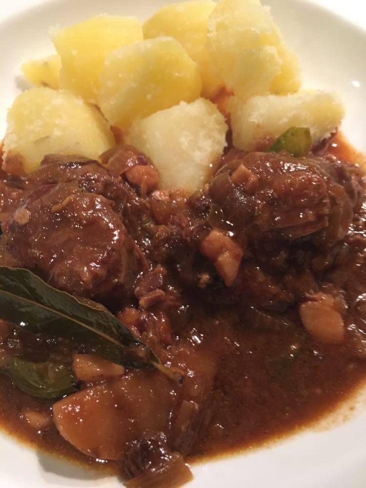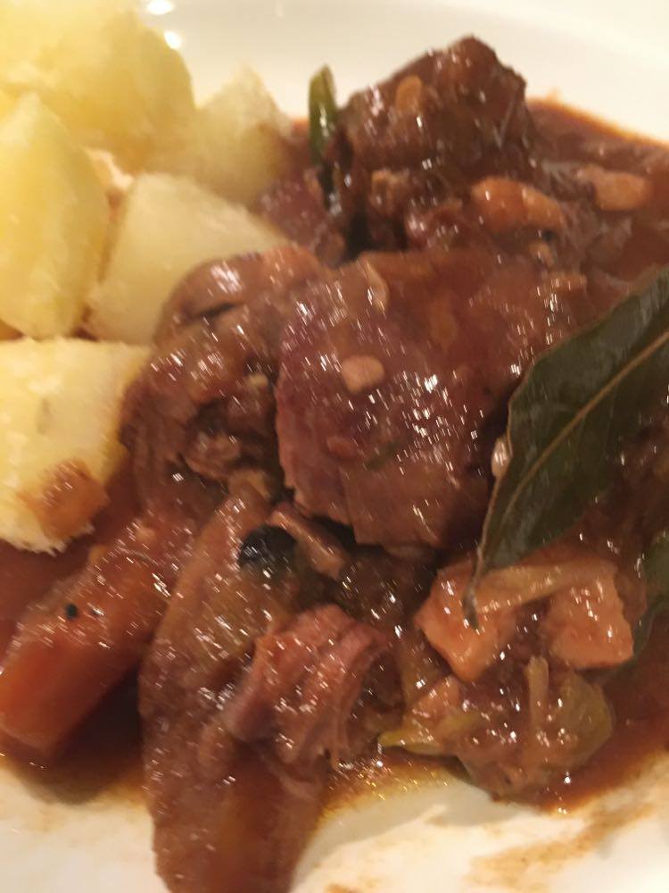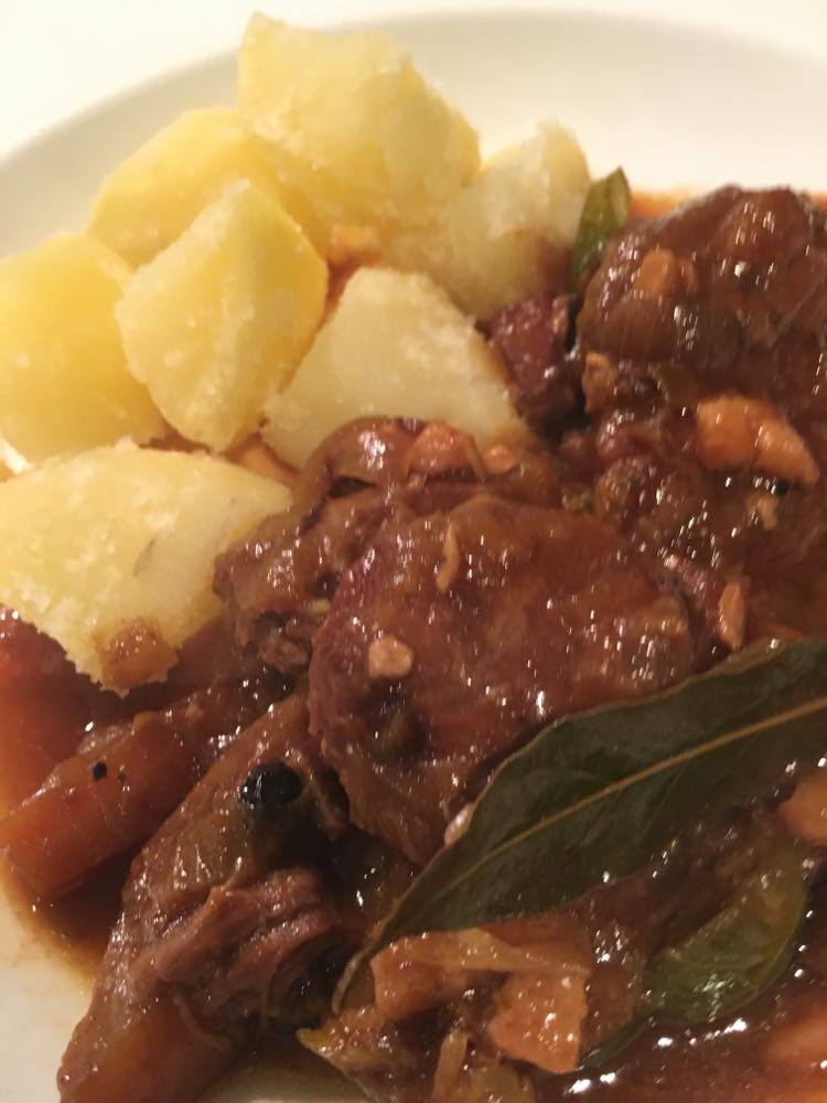 Avant avec ma cuisson en cocotte, tout le liquide y allait. Depuis que j’utilise mon römertopf, je dois en utiliser moins. Il faudra donc éventuellement doser en fonction du contenant de cuisson. J’ai néanmoins déjà diminué un peu dans ma recette. Avant je mettais 1/2 bouteille de cidre, 25 cl de vin sec et 25 cl de bouillon.