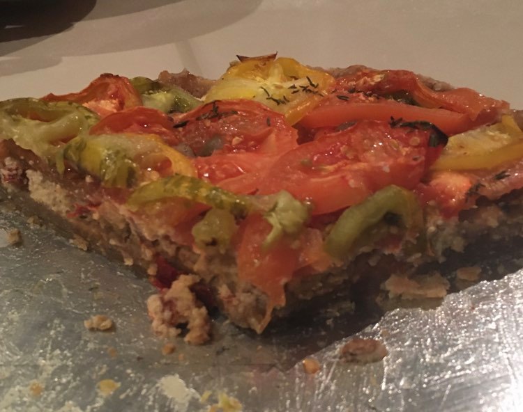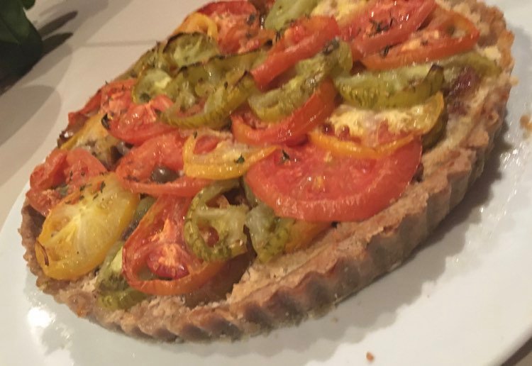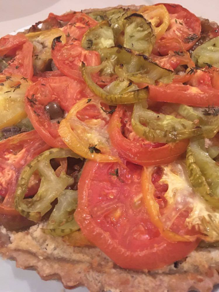 Pour accompagner mes hauts de cuisses de poulet de dimanche, j’avais réalisé quatre préparations autour de la tomate : une simple salade, un tian, des tomates farcies et une salsa de tomates en trois textures (sèchées, semi-confites et pelées), le tout bien codimenté avec olives, câpres, pignons, …