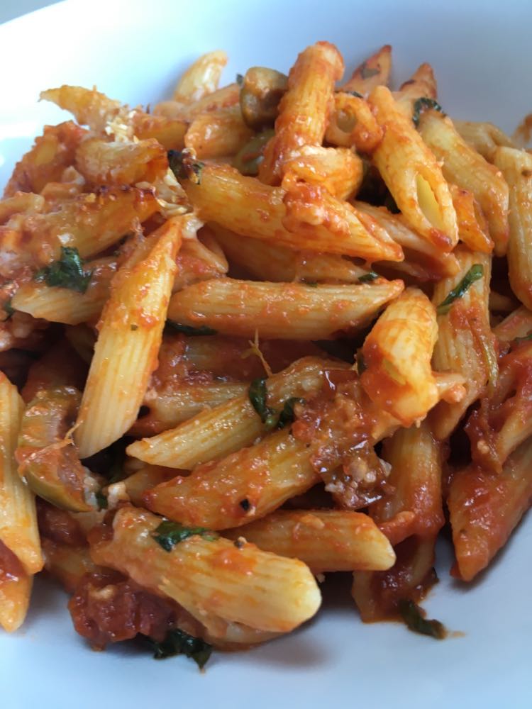 Je suis part d’un combo traditionnel entre la tomate, le haricot cannelini et l’origan et j’ai un peu joué autour. Ma chérie voulait des pâtes, j’en ai donc mis. Et j’ai ensuite eu envie de rendre le plat plus consistant encore avec du thon à l’huile.
