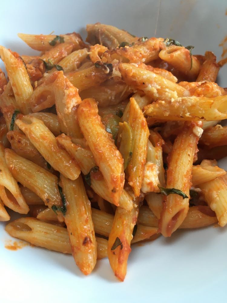 Laver la courgette, en couper les bouts et la couper en gros dés. Les faire revenir dans de l’huile d’olive. En cours de route il faudra saler et ajouter l’origan. Poivrer à la fin. Placer dans un bol et laisser refroidir, ensuite ajouter aux pâtes et mélanger.