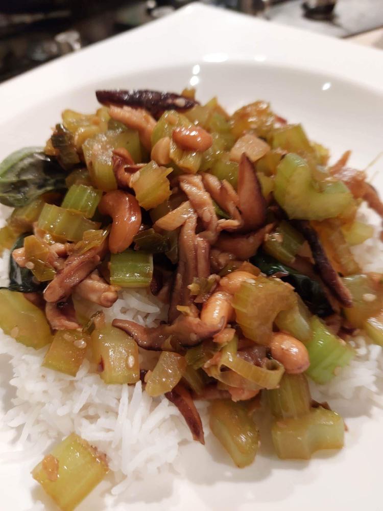 J’y ai ajouté un peu de poivre noir (parce que j’aime ça) et du vin jaune chinois (idée trouvée chez Hervé Cuisine).