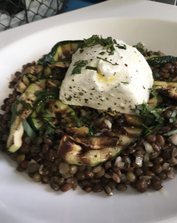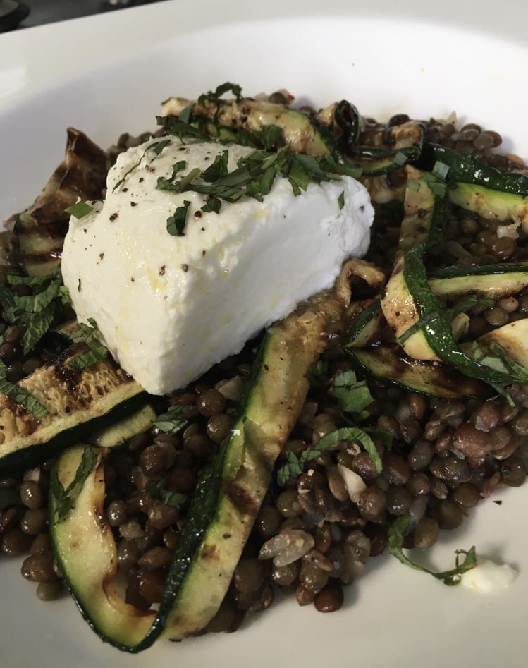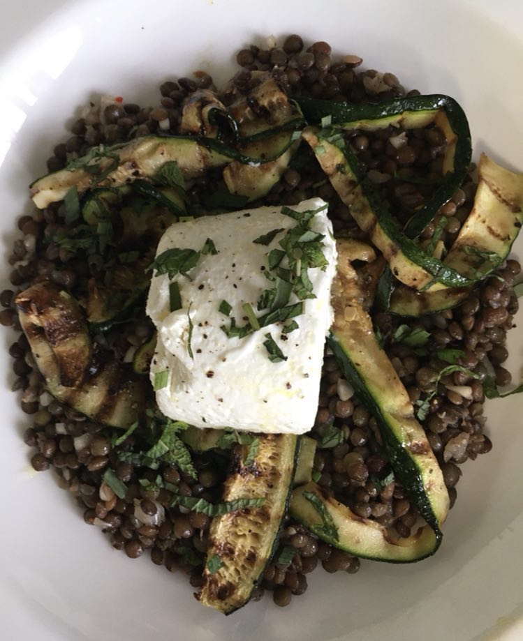 J’avais déjà fait cette recette de salade de lentilles rapide à base de lentilles en conserve, mais avec des courgettes grillées et du chèvre frais. Cette fois, il s’agissait de réaliser une salade d’accompagnement de viande, donc sans le chèvre frais. Et pour changer, j’ai décoré la salade de chou-fleur cuit à l’eau et légèrement épicé et de patates douces rôties au four.