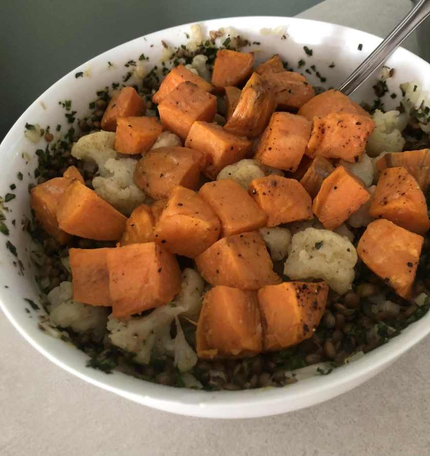 SALADE DE LENTILLES, CHOU-FLEUR ET PATATE DOUCE
